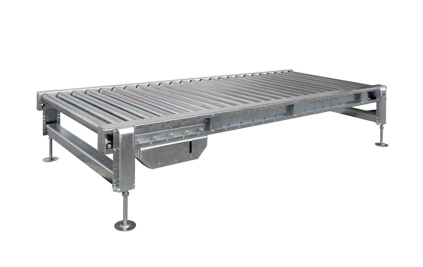 Questa rulliera motorizzata è adibita alla movimentazione dei pallets. Il telaio è in alluminio e può essere fornita con rulli cilindrici di vari diametri e varie lunghezze; i rulli vengono forniti normalmente in acciaio zincato ma possono essere sostituiti da rulli in plastica, inox o rivestiti a seconda del tipo di prodotto da movimentare.