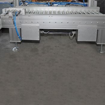 La rulliera è realizzata in lega di alluminio . L'appoggio a terra avviene tramite piedi regolabili, con la possibilità di fissaggio tramite viti. La movimentazione dei rulli avviene tramite catena in acciaio ad anello, azionata per mezzo di sistema motore