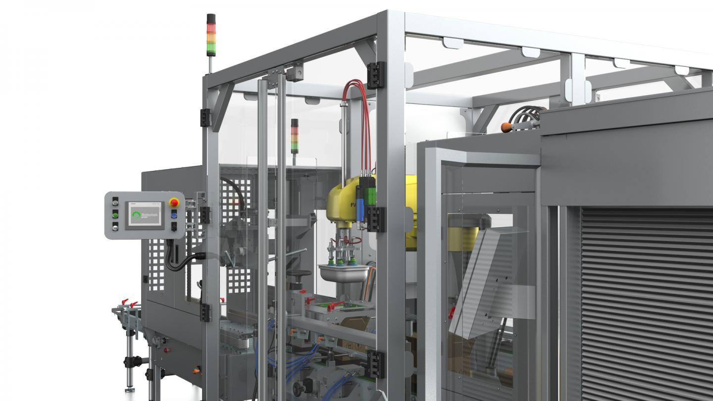 ATENA è una inscatolatrice automatica estremamente compatta e veloce, ideale dove gli spazi sono particolarmente ridotti. Concepita per la movimentazione ed il controllo d'integrità del prodotto grazie all'utilizzo di un sistema di visione e tracciamento all'avanguardia, adatto a tutte le esigenze di produzione. Il sistema fornisce al robot le coordinate per posizionarsi e orientarsi in maniera precisa sull'oggetto. La macchina è inoltre provvista di uno scarto automatico che ne ottimizza l'efficienza produttiva senza mai rallentare o interrompere il ciclo.